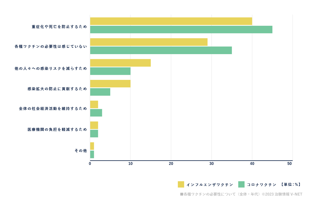 職場で推奨されているため(40代男性)/ 他人から打っていないことを非難されないために(50代女性)/ 海外に行く時必要なことが多いから(50代女性)